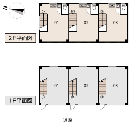 | No. | 1F | 2F | 広さ(合計) | 備考 | 月額利用料 | ||||||||||