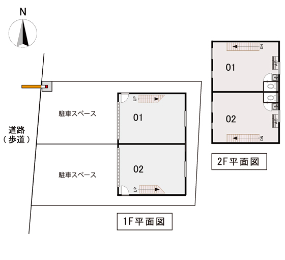 | No. | 1F | 2F | 広さ(合計) | 備考 | 月額利用料 | ||||||||||