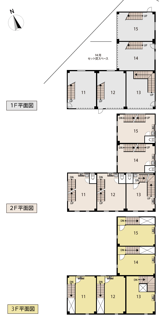 | No. | 1F | 2F | 広さ(合計) | 備考 | 月額利用料 | ||||||||||