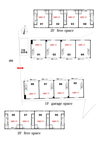 | No. | 1F | 2F | 広さ(合計) | 備考 | 月額利用料 | ||||||||||