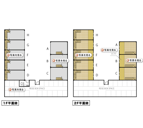 | No. | 1F | 2F | 広さ(合計) | 備考 | 月額利用料 | ||||||||||