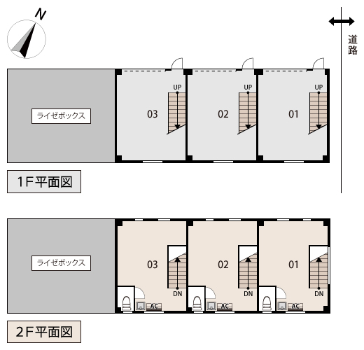 | No. | 1F | 2F | 広さ(合計) | 備考 | 月額利用料 | ||||||||||