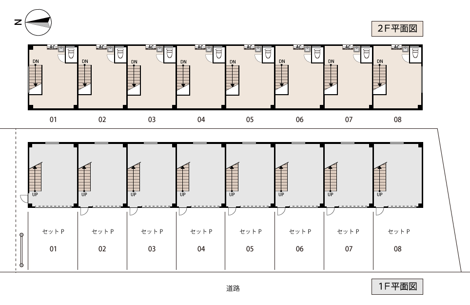| No. | 1F | 2F | 広さ(合計) | 備考 | 月額利用料 | ||||||||||