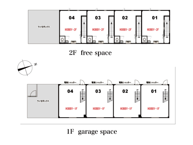 | No. | 1F | 2F | 広さ(合計) | 備考 | 月額利用料 | ||||||||||