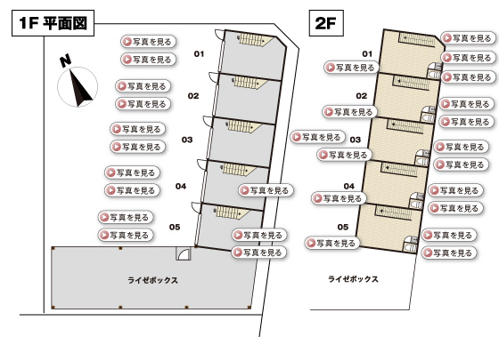 | No. | 1F | 2F | 広さ(合計) | 備考 | 月額利用料 | ||||||||||